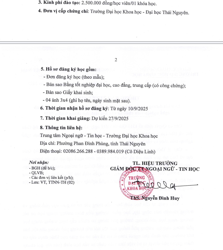 7. Thời gian khai giảng: Dự kiến 27/9/2025.